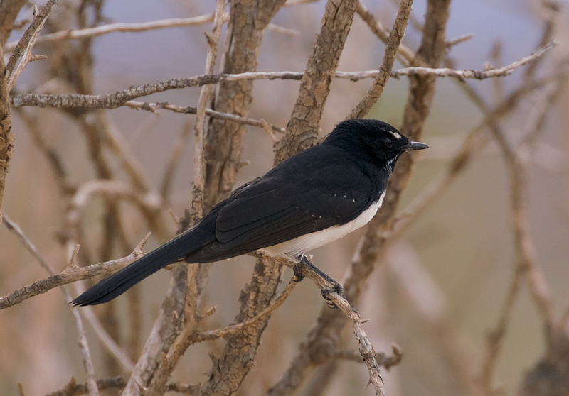 Posted on June 7, 2018August 9, 2021 by Flinders Ranges Field NaturalistsWillie Wagtail: Copley Retention Dam Rhipidura leucophrys at Copley Retention Dam.