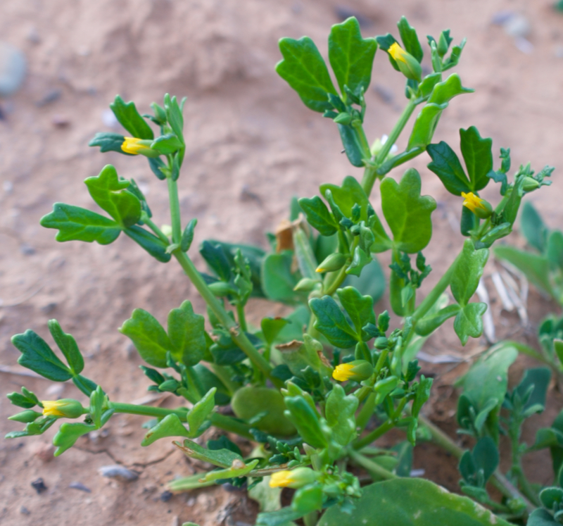 Far less common in the Northern Flinders Ranges than the Square-fruit Twinleaf is the Koch’s Twinleaf (Zygophyllum kochii), seen flowering in July in a small zone near the disused railway track on the north commons of Copley. Koch’s Twinleaf has a conservation status of near threatened.