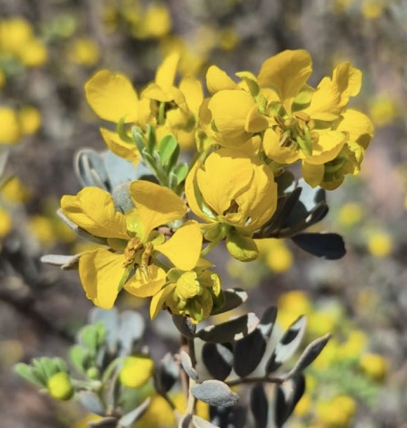 Limestone Cassias (Senna artemisioides subsp. oligophylla) flowering in Spring in the Flinders Ranges.