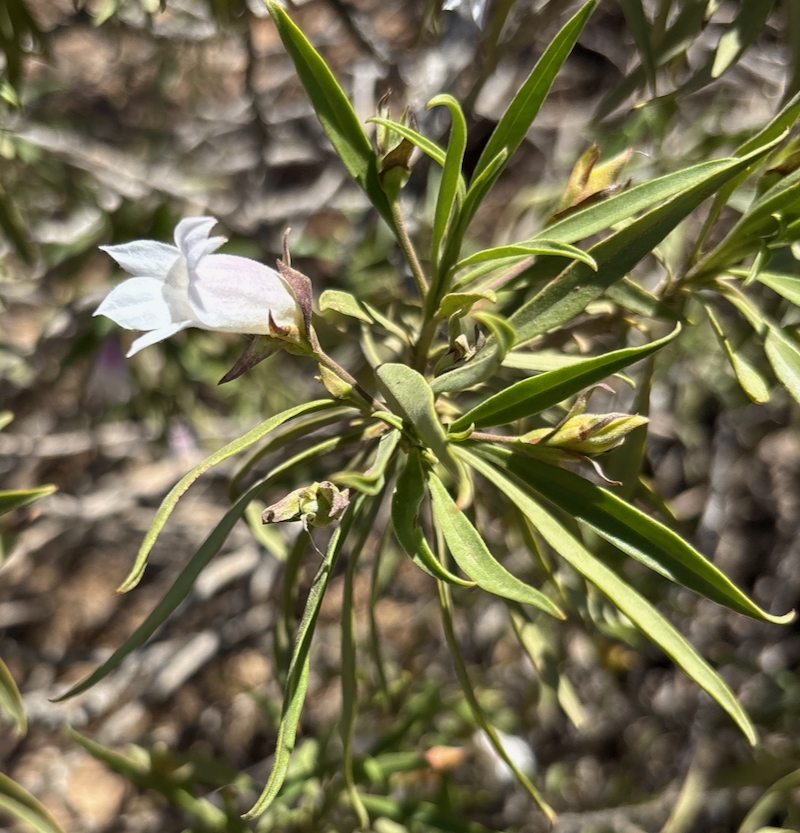 Eremophila freelingii is a common sight in the Flinders Ranges, with flowers that are typically blue-purple to mauve. These white and lilac coloured Eremophila freelingii flowers were seen on Leigh Creek Station in the North Flinders Ranges in November.