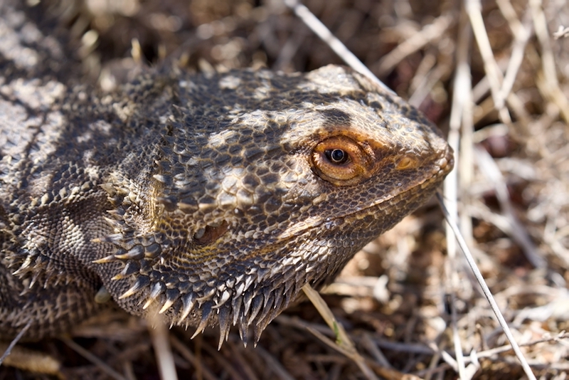 Juvenile Eastern Bearded Dragon (Pogona barbata). This species of dragon can have distinctive underside markings from the tip of the snout to the tail.