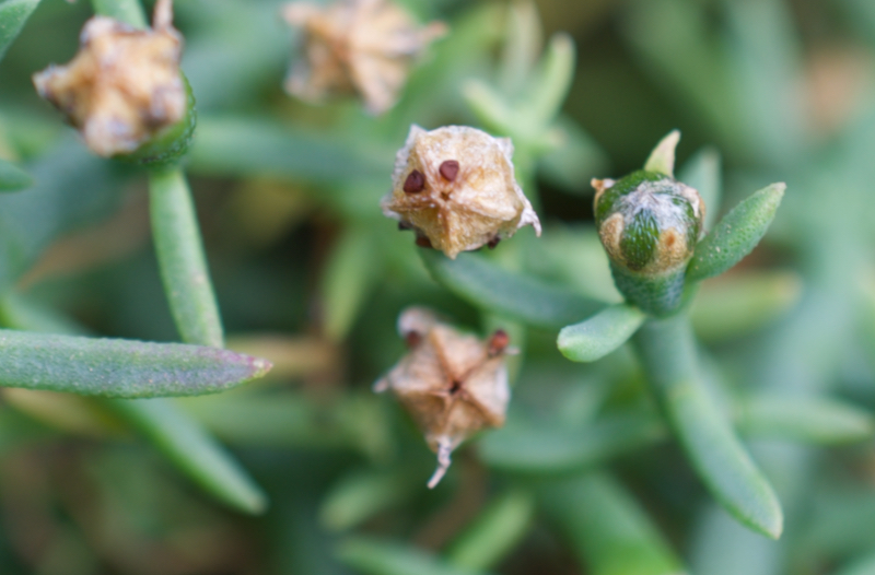 Introduced species Psilocaulon granulicaule, the succulent Wiry Noon-flower, flowering, fruiting and seeding in Copley in winter.