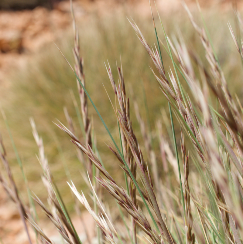 Triodia, commonly known as Spinifex, observed seeding in winter and producing sticky resin used in traditional artifact making in Australia.