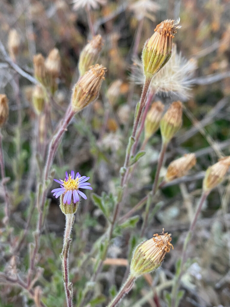 New Holland Daisy (Vittadinia cuneata) flowering and seeding on clay plains near Copley in winter.
