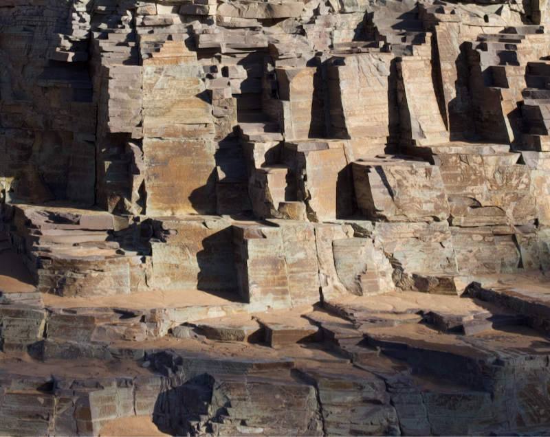These two formations followed the melting of an ice age dating 700 million years ago. “Black silt, rich in fine organic material derived from algae and bacteria, was deposited as laminations (each less that 0.5mm thick) in the calm shelf sea. The total thickness of this silt blanket (known as the Tapley Hill Formation) increased from a few tens of metres in the west to about 3km in the ranges east of Hawker. Here depth of water and rate of subsidence of the basin floor were greatest. As silt built up, the water around the margins of the basin became shallow enough for stromatolites and oolite banks to form; these are exposed near Port Augusta and Balcanoona [Balcanoona Formation].” – Excerpt from The Legacy of Time: The Story of the Flinders Ranges by the Royal Geographical Society of South Australia.