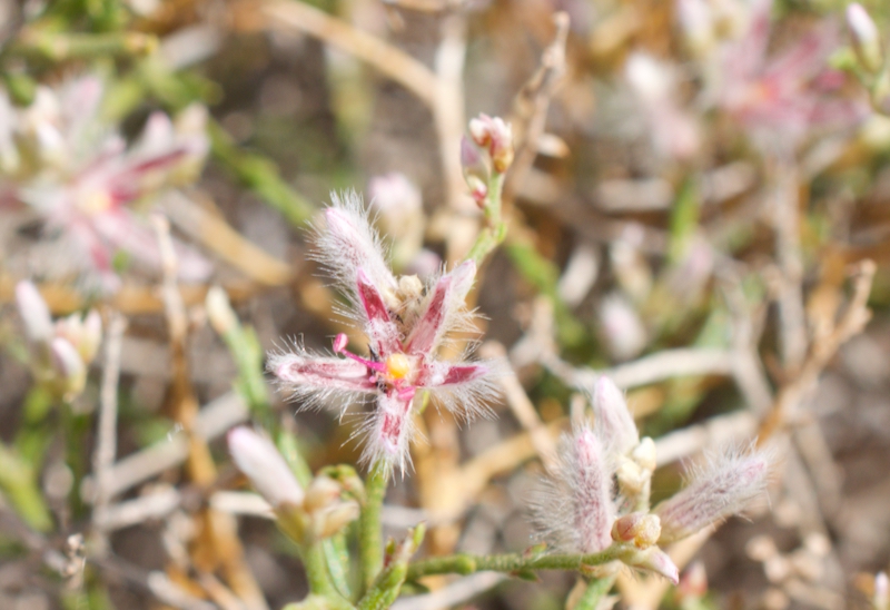This Ptilotus on the Copley Commons appears to be the Gammon Ranges Fox-tail, some sixty kilometres from the Gammon Ranges. The sighting was made at the site of the district Gymkhana, to which horses are transported from Nepabunna, which may offer a possible explanation as to its existence in the Copley area.