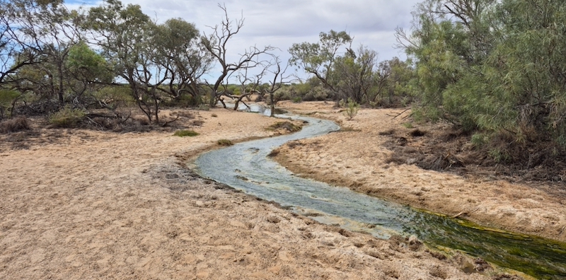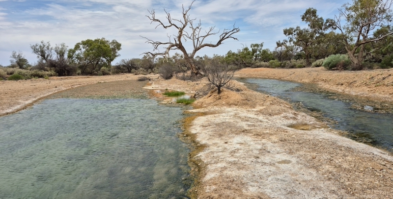 Algae and cyanobaterial colonies growing in the hot springs of Muloorina, east of Marree, resemble those found in Paralana Hot Springs at Arkaroola.
