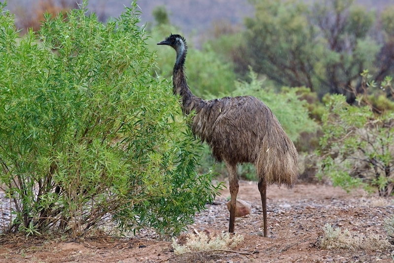 The diverse Emu diet includes the seeds of a wide range of plants in the Flinders Ranges including Sandalwood, Quandong, Nitrebush, Eremophilas, Myoporum and Ruby Saltbush. Emus carry seeds in their gut from 3 hours to 10 months (depending on the type of seed) and can walk 13.5 km daily, making them significant agents of seed dispersal.