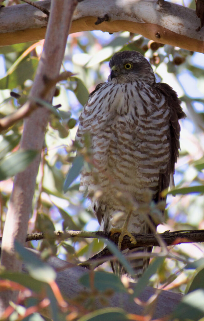 Collared Sparrowhawk, Accipiter cirrocephalus, a small but fierce bird-hunting hawk seen in Copley, Northern Flinders Ranges in July.
