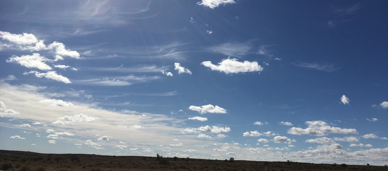 The distinctive herringbone pattern of Cirrocumulus stratiformis, high altitude cloud formation of ice crystals and supercooled water droplets, seen over Leigh Creek.